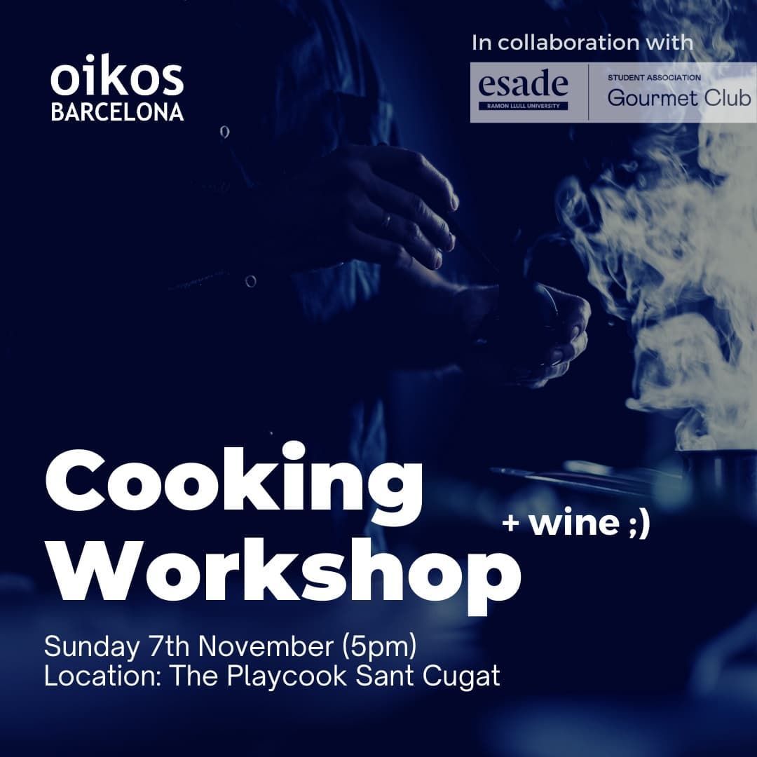 Cook and drink wine with us😉 oikos Barcelona in collaboration with the @gourmetclubesade will teach you how to create delicious vegetarian recipes combined with an awesome wine tasting🍷 there will be a little cooking competition and the food provided comes from local vendors and “Too Good to Go” 🤤 We are waiting for you!