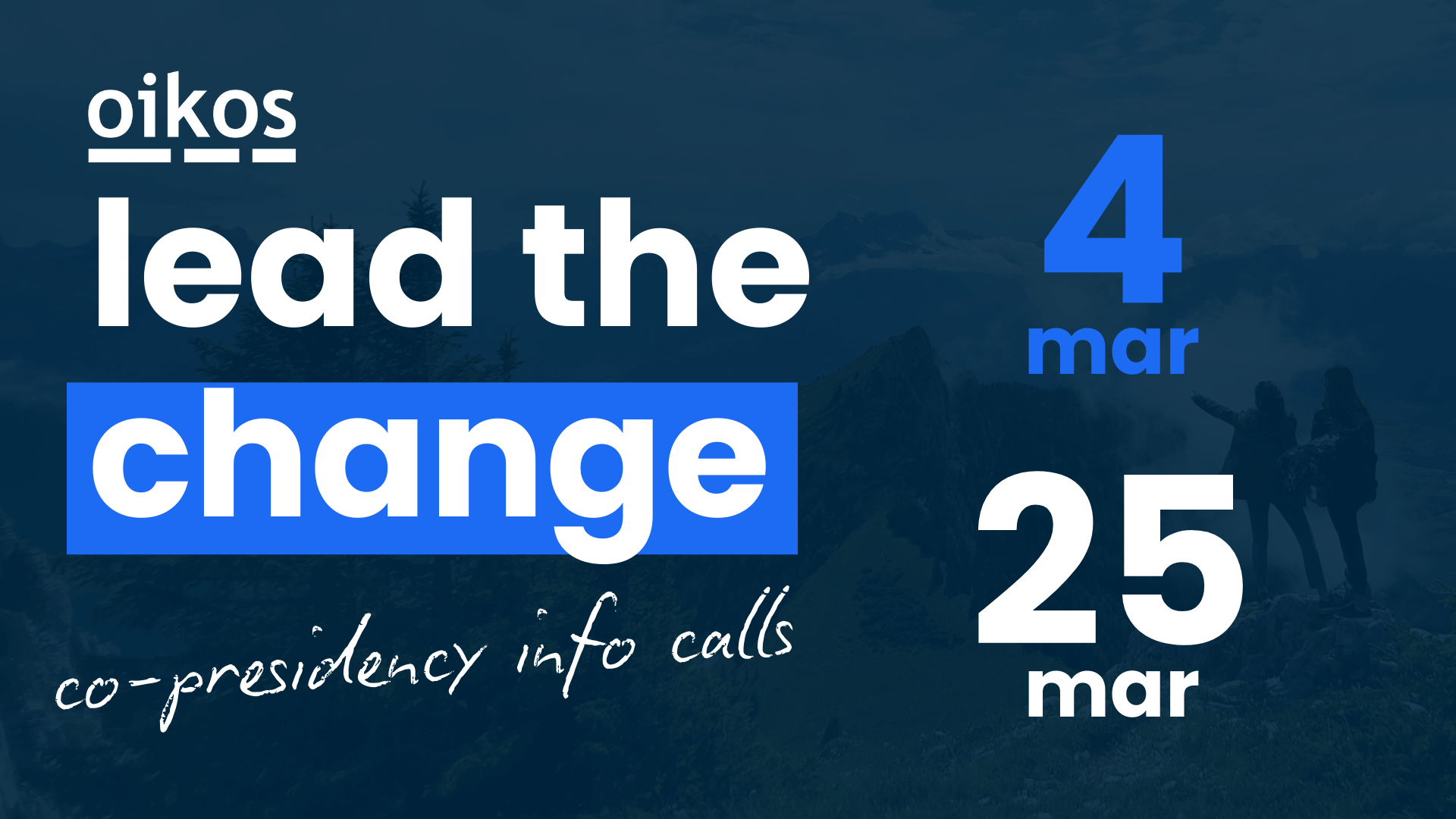Join the first Q&A Call on March 25th, 11:30am-12:00pm CET where you can learn about the oikos Co-presidency. The applications are open for candidates, click here to learn more.